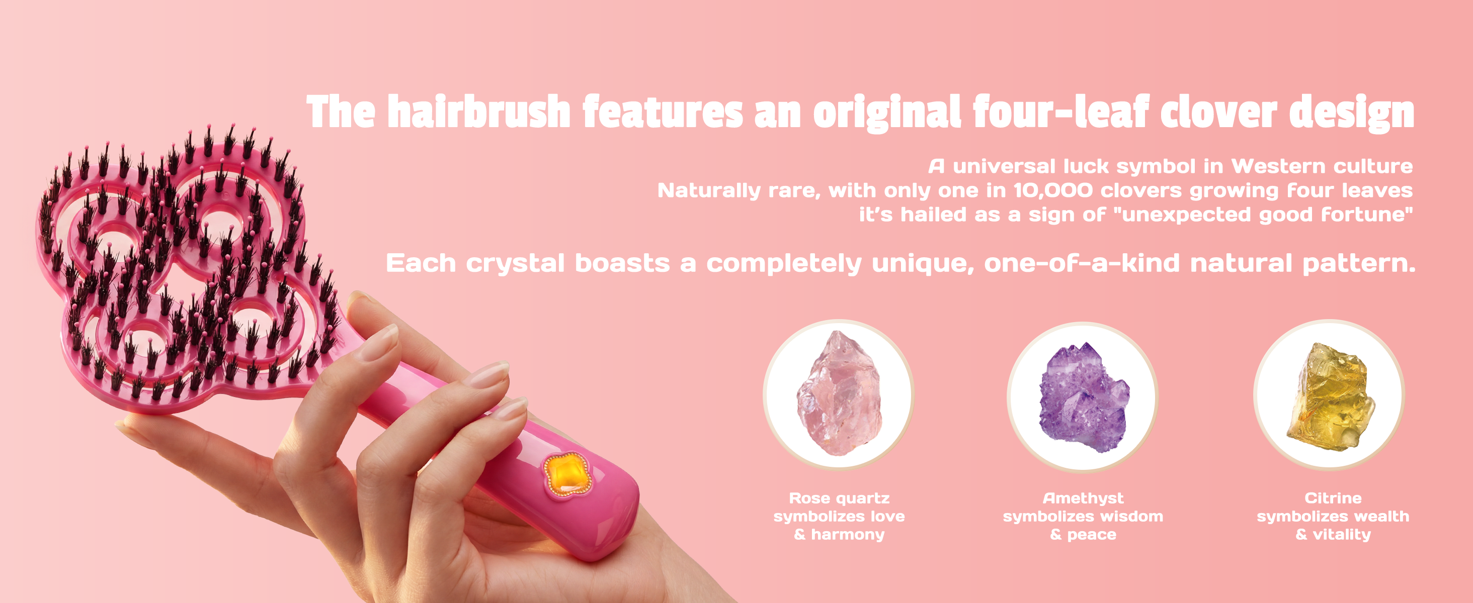 Inspired by the clover’s symbolism of luck and blessings, combined with the energy of natural crystals, SIMETRA transforms a simple hairbrush into a meaningful daily companion. Start your day relaxed, confident, and positive—beginning with your hair.